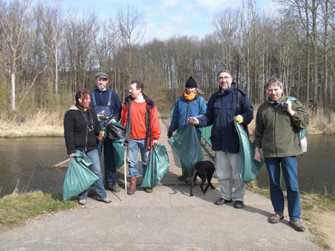 Der halbe Ortsverband macht sich auf, um die von den Wildschweinen in der Wolkenweher Niederung aufgewühlten Flächen von Industrieprodukten zu säubern. Erfreut stellten sie dabei fest, dass der bei den Bürgern so beliebte Wanderweg doch sehr gut in Schuss war. An manchen der im Schilf verdeckten Anglerplätze wurden sie dann allerdings doch fündig und konnten Bierflaschen, Nahrungsmitteldosen, eine CD und eine defekte Angelrute in ihre Müllsäcke stopfen.