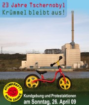 Umweltverbände und Anti-Atomgruppen aus ganz Norddeutschland rufen gemeinsam zu einem bunten Protestnachmittag auf vor dem Atomkraftwerk Krümmel bei Geesthacht an der Elbe, östlich von Hamburg. Das Motto "Aus bleibt aus" spielt darauf ab, dass Krümmel seit 2007 wegen vieler Defekte nicht in Betrieb ist.